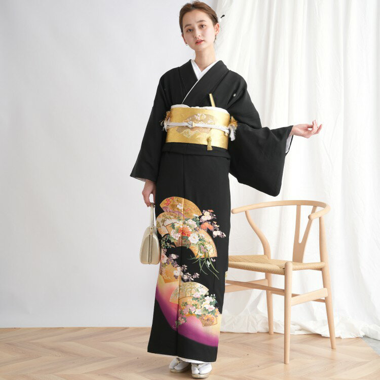 【レンタル】黒留袖レンタル フルセット 高級 正絹 結婚式着物 留袖 黒留袖 おすすめ お宮参り 母親 留袖レンタル レンタル着物 セット レンタル留袖 黒留め袖 貸衣装 レンタル衣装 着物セット 菊 梅 牡丹 扇 古典